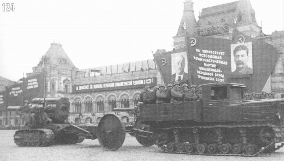 苏联人使用炮兵拖拉机拖带203mm B-4榴弹炮