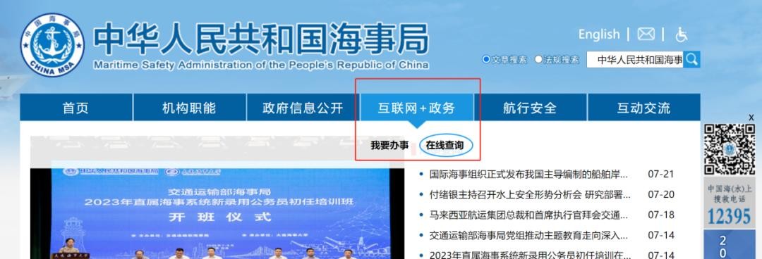 1.进入中华人民共和国海事局官方网站(https://www.msa.gov.cn/)