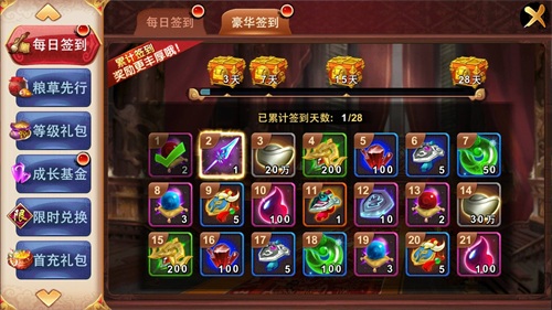 《无双赵子龙》在消费内容的设置上中规中矩,没有创新之处但囊括的内容也非常丰富。进入游戏后玩家首先要做的就是打开签到界面进行第一日的签到工作,并且在之后的每一天玩家都不要忘记进行签到,日积月累之后将是一笔不了的财富。七日狂欢活动也是玩家不容错过的一个环节,在七日狂欢中玩家既能凭借等级的提升领取丰厚的奖励又能以极低的价格买到超值的礼包。成长基金是游戏中的一个创新之处,玩家可以花费1000魂玉购买成长基金,够买成功后角色等级每提升5级都能领取相应的魂玉,而且领取数量会逐渐增加,总共可以领取10000魂玉,相当吸引人。