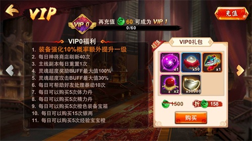 当然,现在主流游戏标配的VIP特权设计在本款游戏中也可以见到,但是,小编不建议大家刻意的因为VIP特权而去充值,还是要顺其自然,根据自己的需要去消费,否则只能白白浪费金钱。