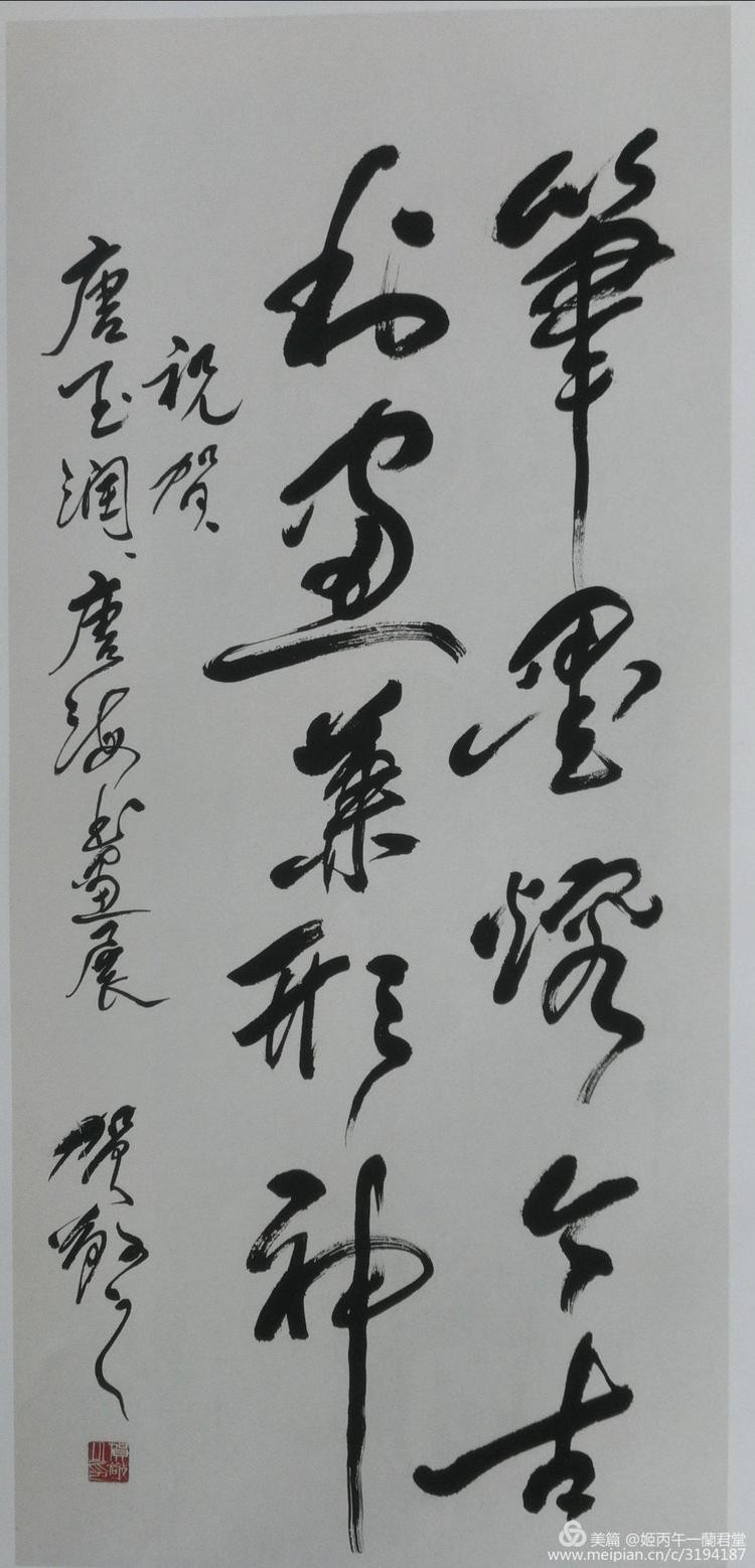 过了一年,老板知道了我与书画有人脉,他很喜欢唐老师作品,让我请唐老师来公司留点墨迹,这大概也是唐氏匾额效应吧。当晚我找到唐老师,把我目前状态和老板意思给先生说了,有强调说我在他那打工,老板对我不错,知道你画价不低了,请少要点吧。”