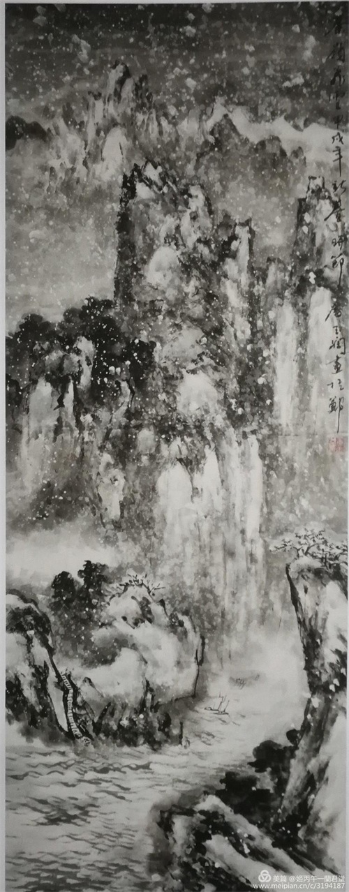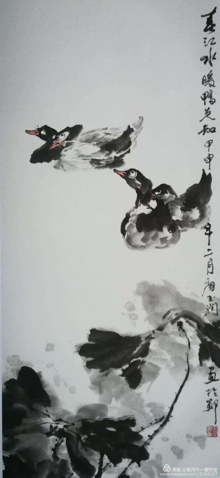 《春游图》与得意弟子楊国锋(已逝)合作,楊国锋补鱼,鱼有宋人风格。