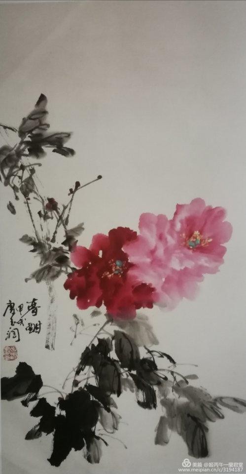 唐先生是位全面发展的老画家,除书法,唐氏匾额,他画的牡丹深受各阶层喜爱,有“唐牡丹“之名誉。他笔下的玉兰,蘭竹,菊花,梅花,荷花等等花卉题材也是丹青溢彩,惹人喜爱。