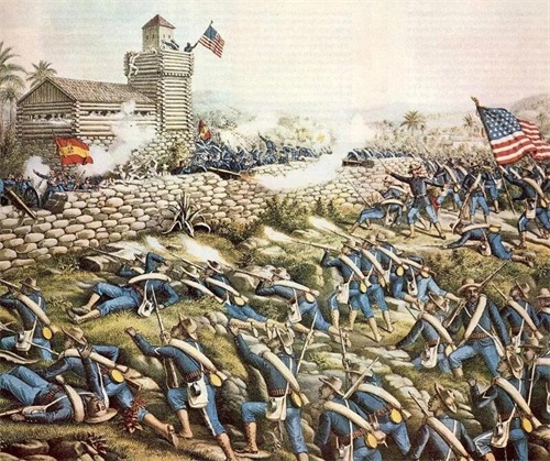 正当古巴独立战争已接近完全胜利之时,1898年4月,美国以护侨军舰“缅因号”在古巴哈瓦那港爆炸为由封锁古巴北部港口和圣地亚哥,24、25日,美西两国互相宣战,美西战争爆发。该年8月,美军占领菲律宾首府马尼拉城并驱逐菲律宾本土起义军,取代了西班牙在菲律宾的统治,而早在1898年6月,美军就已登陆古巴,美军在与古巴起义军经过会谈后决定进行联合作战,至7月中旬,美古联军成功占领了古巴港口城市圣地亚哥。