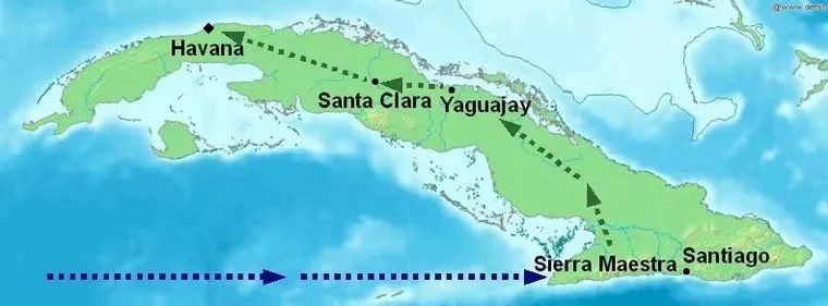 1956年11月25日晚,菲德尔·卡斯特罗率领有82名成员的古巴革命队伍,乘坐格拉玛号游艇驶向古巴。卡斯特罗原定于11月30日到达圣地亚哥,届时本土的古巴革命者将配合其拿下圣地亚哥,但由于海上波涛汹涌,卡斯特罗的队伍直到12月2日才到达古巴奥连特省的拉斯科罗拉达斯沙滩,由于长途的海上奔袭,加之水土不服,游击队员已极度劳累;12月5日,游击队突然遭到巴蒂斯塔军队的围剿,经过血战,游击队于12月8日突出重围并进入马埃斯特腊山区,但此时,游击队在一开始便陷入绝境,先前出发的82人只剩下12人。