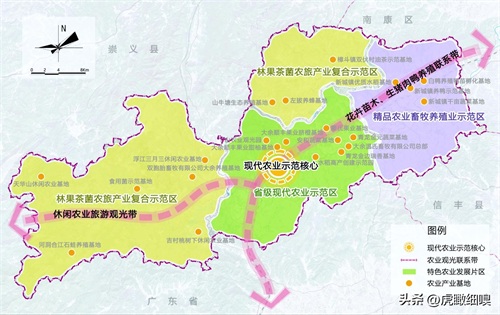 4 个产业片区:按照全县各乡镇产业发展特色,将大余县划分为四个产业功能分区。