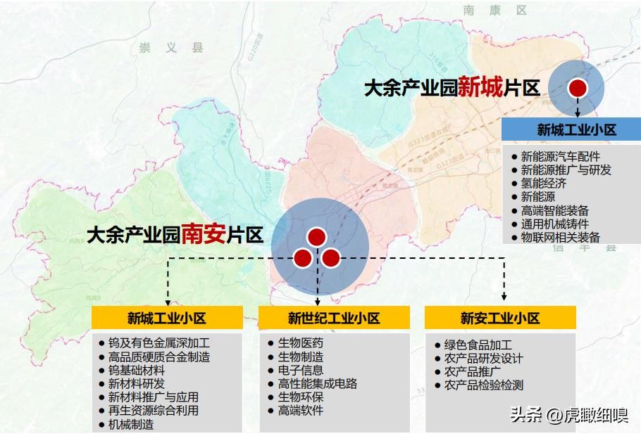 2 个产业园片区:发展大余县工业园区南安片区、新城片区成为县域产业发展中心。