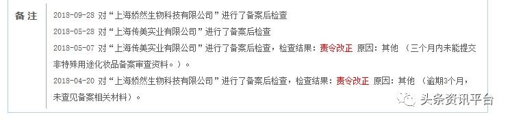 此外,“三草两木珍萃多元修护活力眼膜”、“三草两木寡肽修护精华液”、“三草两木备长炭净颜修护面膜”也都曾被责令改正过,原因也和备案材料准备与备案核查超期等有关。