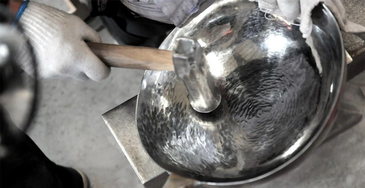 而熟铁锅是通过铁皮反复锻打成型的,相比较生铁锅这类锅具的表面比较光滑,重量轻且薄,传热速度比较快,同时也相对不容易出现粘锅。