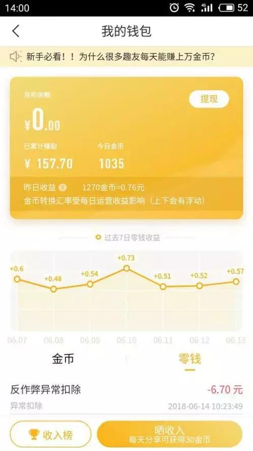 这些真金白银的利益,果然能吸引“下沉用户”蜂拥而至,但是,这些所谓的资深师傅,他们真的能拿到钱吗?恐怕没那么容易,有人曾提过一个很务实的问题,趣头条如果停止金币激励,日活会不会瞬间掉成0?这绝非危言耸听。