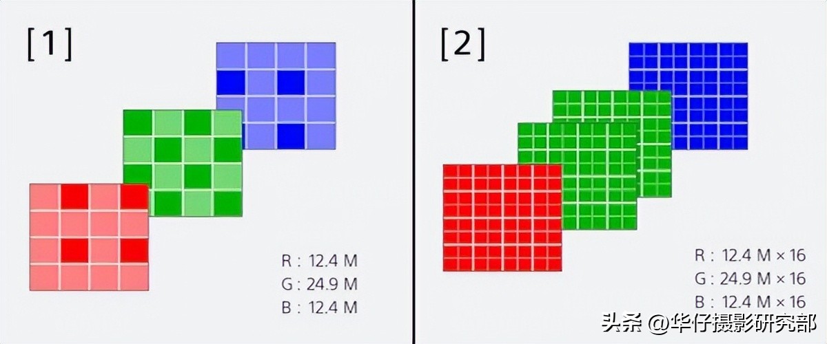 1是正常拍摄示例; 2是16图像像素移位多重拍摄示例