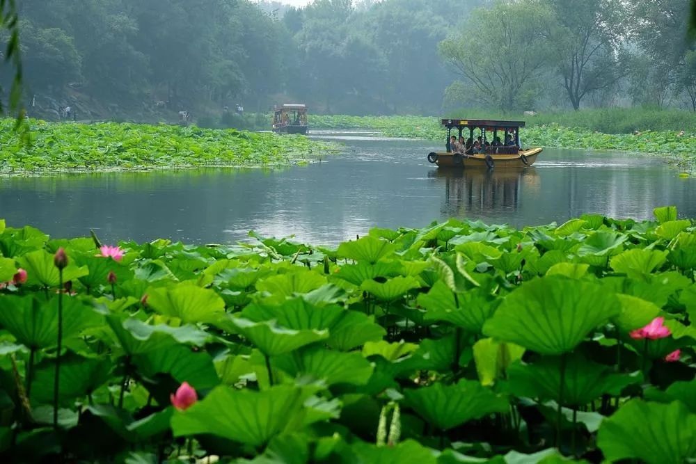 圆明园内大小湖面众多,多处水面都有荷花种植,无数临湖的亭台楼阁成为清帝夏日赏荷的佳处。