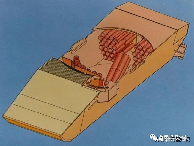 以色列“梅卡瓦”系列主战坦克内部的弹药储存示意图,可以看出其弹药主要存储在车尾处。
