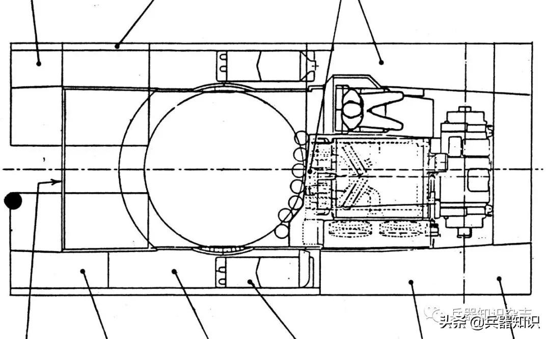 这样的防护层能抵抗弹丸尤其是空心装药破甲弹的侵彻。这种设计的特点还在于乘员远离着弹几率最大的车首位置,心理可增强安全感。车体两侧和后部的防护也同样是内、外层装甲,中间有各种附件的特殊防护层。