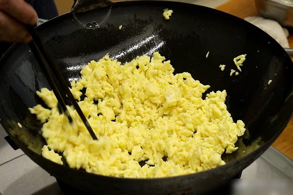 步骤b:鸡蛋别加姜,炒鸡蛋的时候要炒至碎嫩