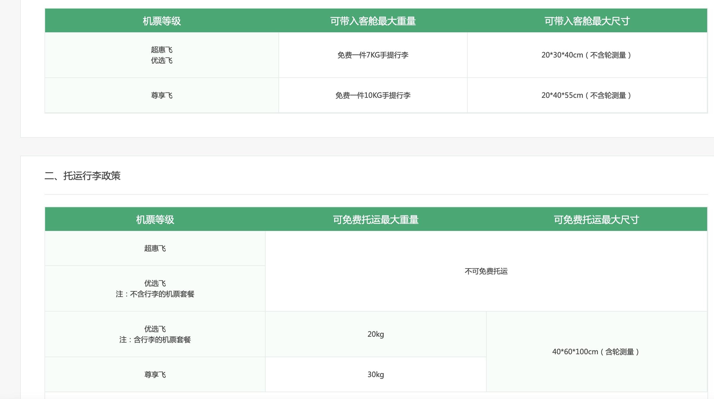 春秋航空客服: 一般我们“优享飞”和“尊享飞”是有免费托运行李重量的,“超惠飞”是没有的。只要您没有办现场的值机,航班计划起飞前的1个小时以外,都可以在我们官网或电话中购买,比现场会优惠一点。电话这边5公斤以内是53元,10公斤以内是105元,最高可以买到20公斤210元,现场购买的话就是每5公斤75元。