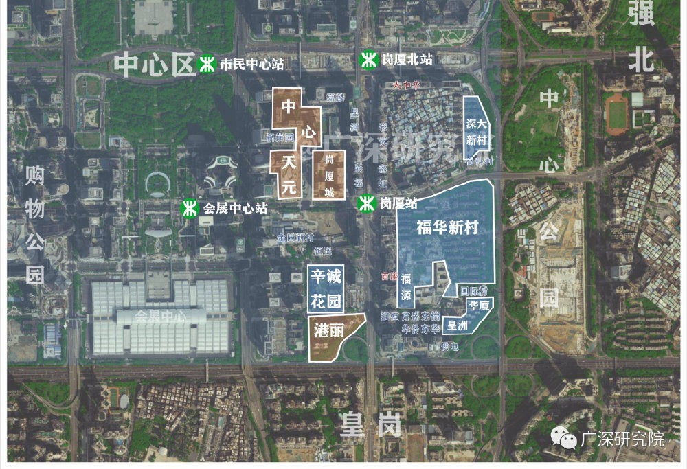 福田中心区2.0,由红荔路、滨河大道、新洲路、皇岗路四条城市干道围合而成;其中南片区是城市商务中心,深圳国际会展中心和一大批高档写字楼宇坐落于此;北片区是行政、文化中心,市民中心、文化中心、电视中心、少年宫等坐落其中;结合区域特点,中心区可以细分为四大板块,分别是:民田、购物公园、海田、岗厦。接下来我们逐一详解四大板块。