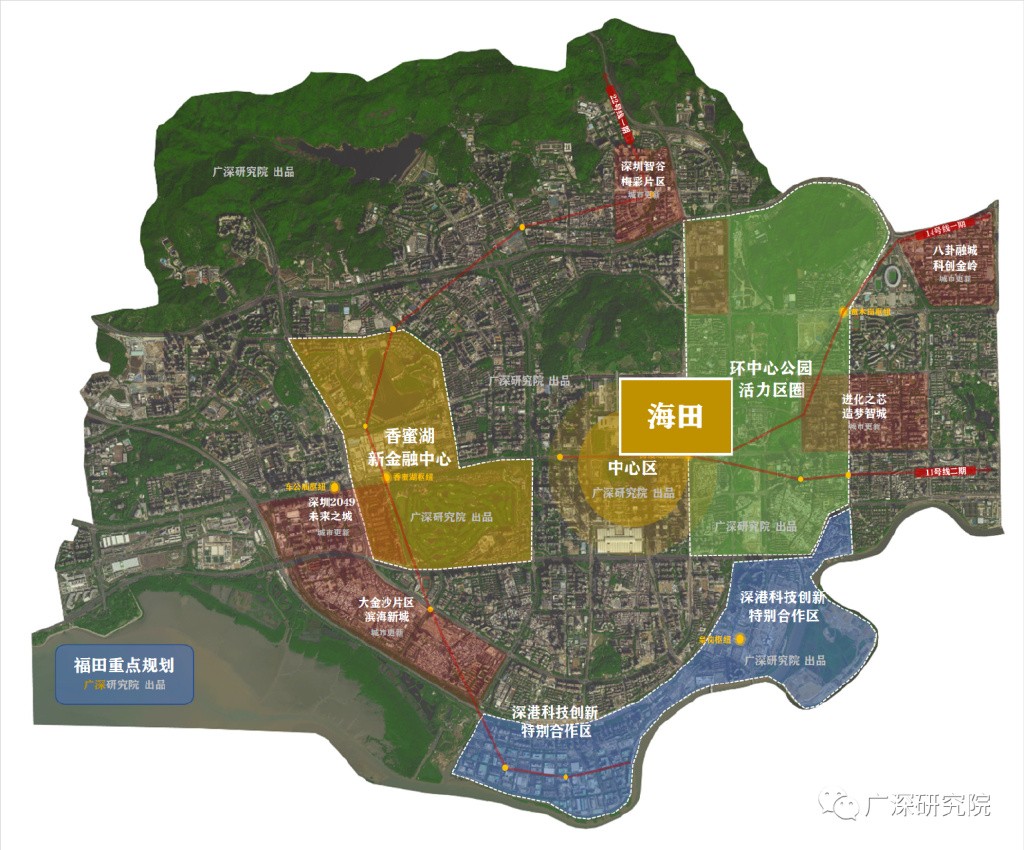 规划板块西侧是深圳重点规划的香蜜湖新金融中心;福田重点规划:香蜜湖·新金融中心