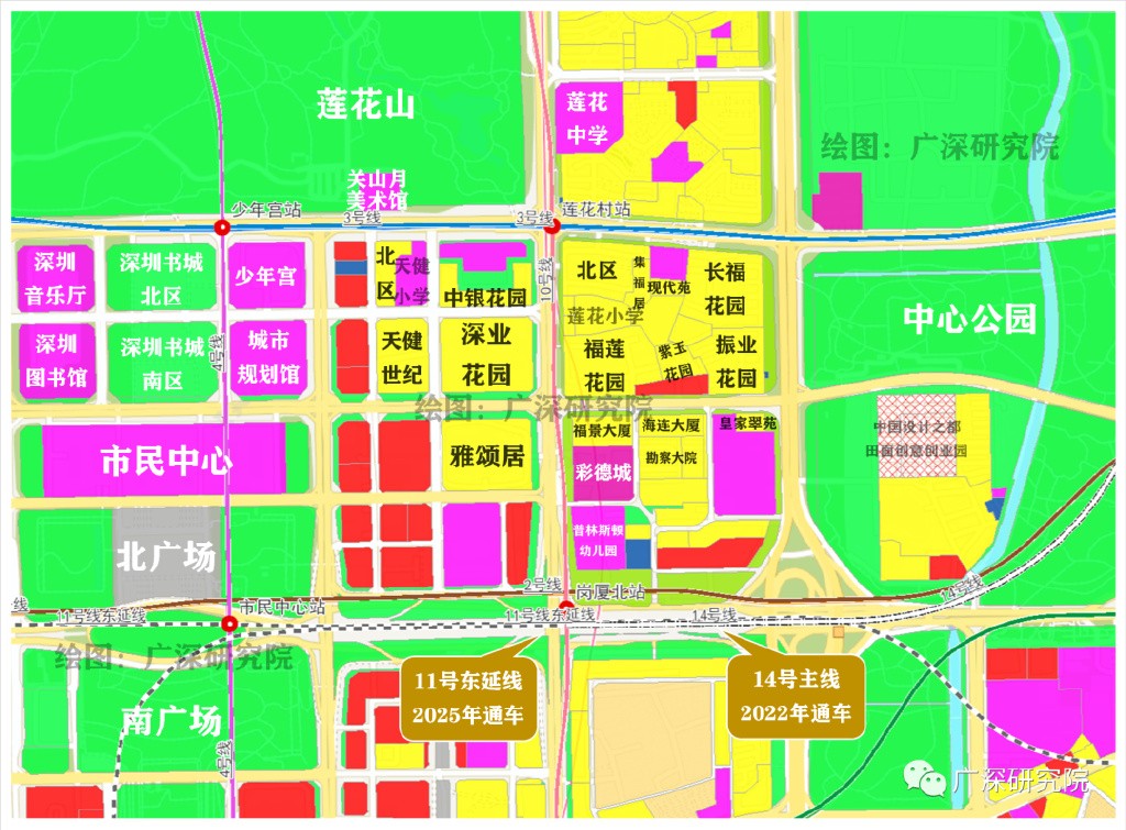 板块东区属于深圳重点规划的环中心公园活力圈;福田重点规划:环中心公园·活力圈。区域内有较大旧改机会(莲花三村等);还有两条新规划地铁线,分别是11号东延线、14号主线;