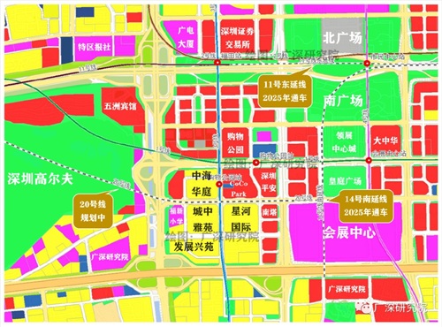 板块西侧是深圳重点规划的香蜜湖新金融中心;周边虽没有大型旧改项目,但有三条新规划地铁线,分别是11号东延线、14号南延线和远期20号线;西侧的深圳高尔夫未来可能改造成开放式公园,若项目落地可弥补区域没有大型公园的不足。