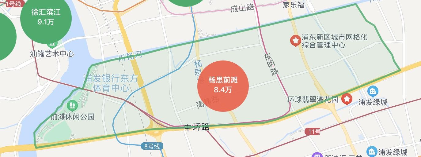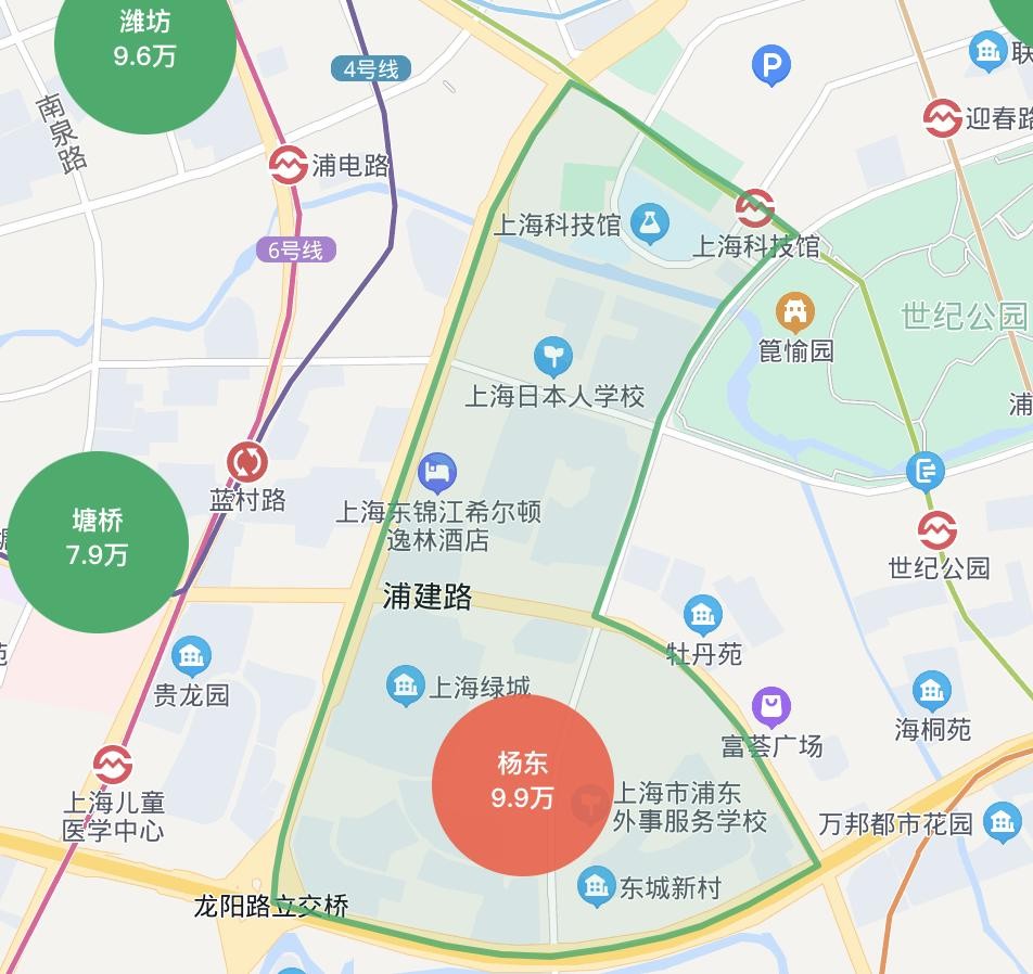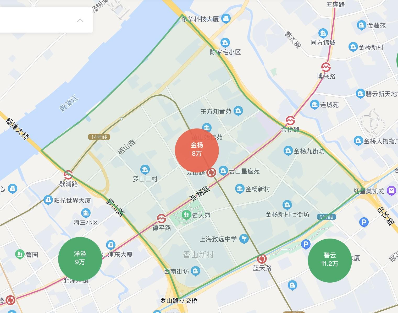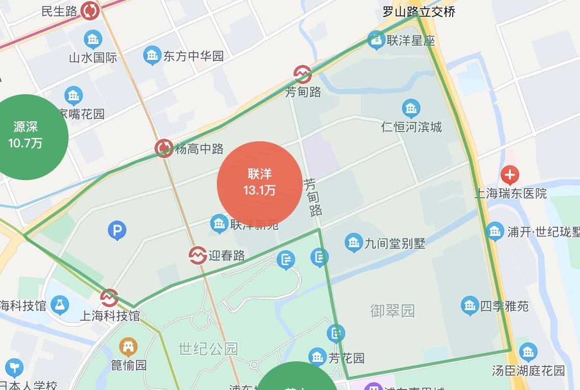 杨东板块位于上一篇介绍的联洋板块隔壁,行政上一样属于花木街道。板块东至锦绣路、浦建路,南至龙阳路,西至杨高南路,北至张家浜。杨东是一个纯商品房社区,塘桥则是产住结合。小区基本都是05年前后建成的。