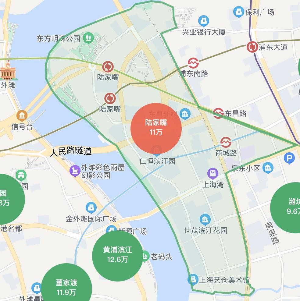 核心腹地:上海中心、环球金融中心、金茂大厦、国金中心,东方明珠。