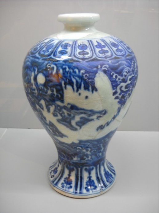 明代永乐青花海浪白龙纹敞足梅瓶