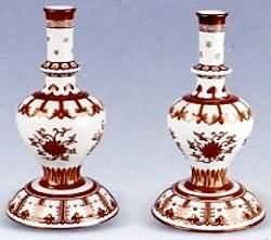 42、双联瓶:瓶式之一,流行于清代,因两瓶联成一体而得名。通常是两瓶的腹部粘连在一起或自口至底通体相连。市场上出现的仿制品中,有书“大明万历年制”楷书款的。