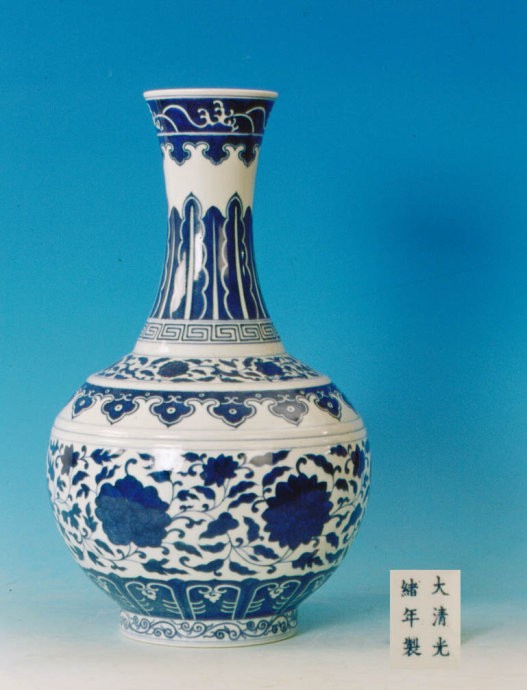 39、赏瓶:瓶式之一,是清代雍正朝新创造型,一直延续至清末宣统朝,成为官窑传统器形。瓶呈撇口,长颈,圆腹,圈足,多以青花缠枝莲为饰,取其“清廉”谐音,专用于皇帝赏赐臣下,意在令其“为政清廉”。同治以后又增添粉彩与单色釉描金等品种,并改称“玉堂春瓶”。