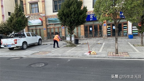 波密县城坚守岗位的清洁工人