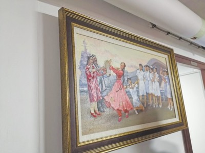 ▲在海军乌鲁木齐舰的宿舍区,悬挂着反映新疆风土人情的油画。