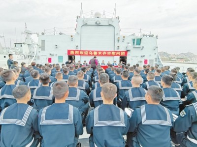 乌鲁木齐舰入列前夕,乌鲁木齐市组成了拥军慰问团,对乌鲁木齐舰全体官兵进行了走访慰问。任君说,此次慰问活动中,乌鲁木齐市与乌鲁木齐舰确定了“舰市共建”的长效机制,万里海疆与新疆开始血脉相连。