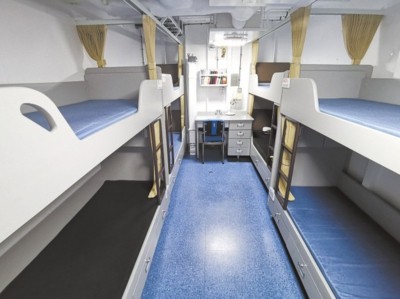 ▲海军乌鲁木齐舰的女兵宿舍,显得温馨而舒适。