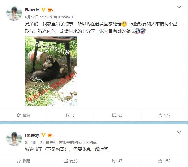 而在前两天入江闪闪还在微博表示自己"被狗咬了",需要休息一段时间,之后又说自己家里出了点事要赶着回家处理,所以要请假暂停直播,那么真实原因是因为被抓了吗??