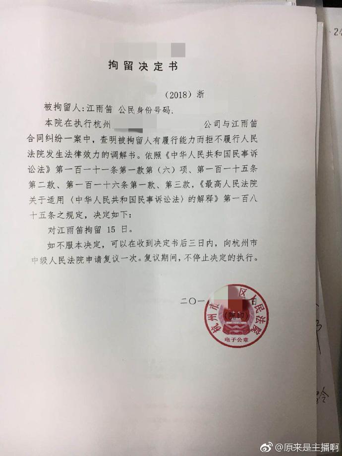 同时博主还爆出的拘留决定书。