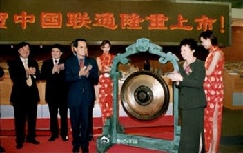 (2000年6月21日、22日,中国联通分别在美国纽约证券交易所和香港联合交易所挂牌上市)