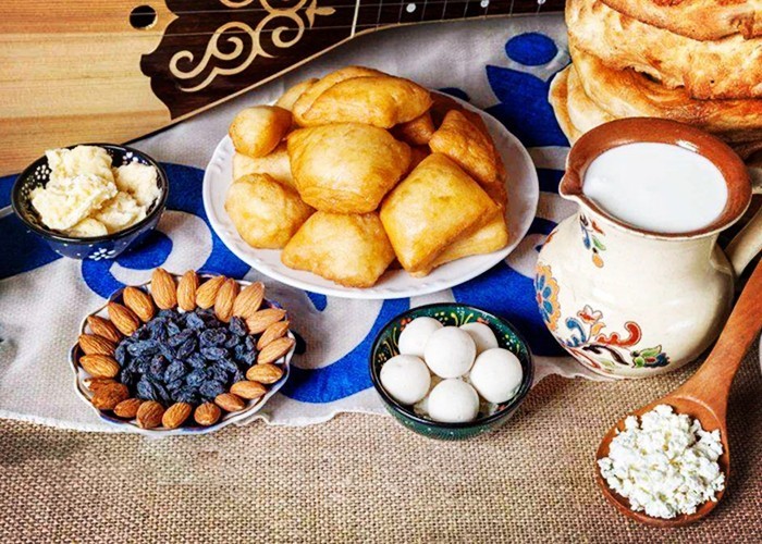 包尔萨克是新疆哈萨克族人民的小吃,他们是非常热情好客的,常把这种小吃当做一种特色菜来招待五湖四海的朋友们,这样搭配就像汉族人的油条和豆浆,吃起来非常美味。