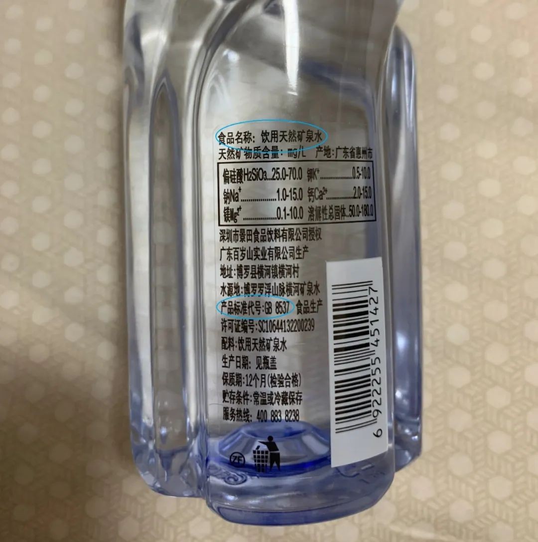 既然天然矿泉水是优先选择的瓶装水,那么消费者在选购的时候就要留意产品标签了,标签上标注为“矿泉水”字样的,执行的是国家强制性标准是GB8537(饮用天然矿泉水国标)。