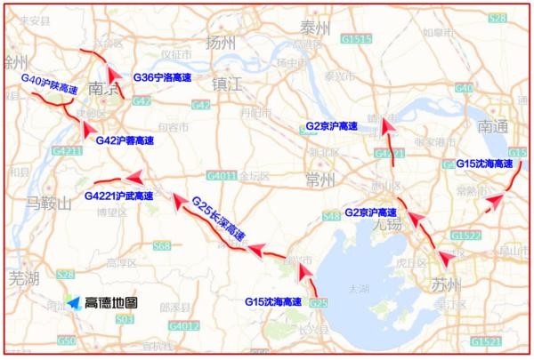 春运期间,江苏省内出程易拥堵缓行的高速主要是G36宁洛高速、宁合高速、G25长深高速等高速的部分路段;建议行驶到以下路段的车主时刻注意路况,及时躲避拥堵。