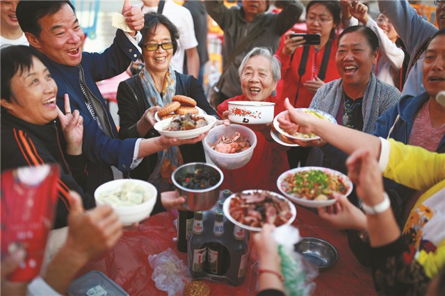“老妈,咱们用从广州带来的腊肉再做一道菜,怎么样?大家一定会喜欢吃的。”开席之后,眼见着邻居们欢聚一堂吃得津津有味,居民孙穗花高兴地提议,在原本已经贡献了5道菜肴的基础上,再贡献一道美味的粤菜。