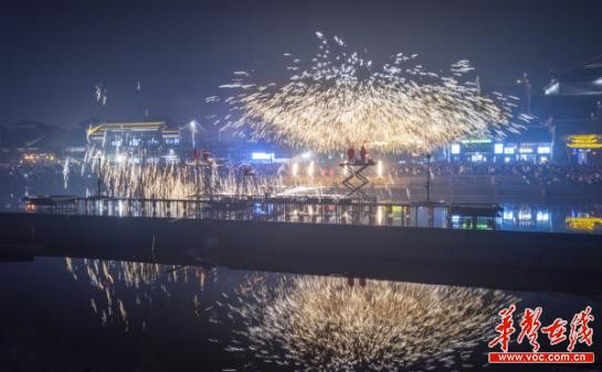 铜官窑古镇打铁花表演(辜鹏博 摄)