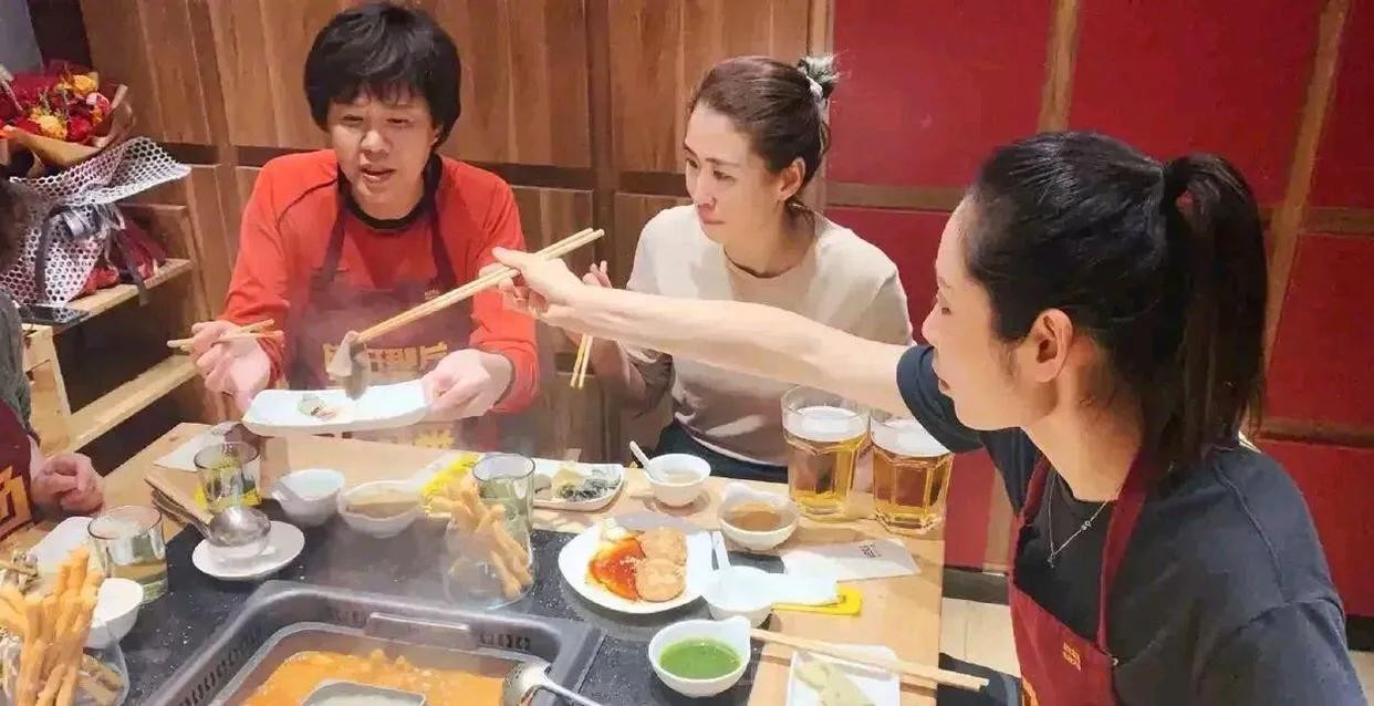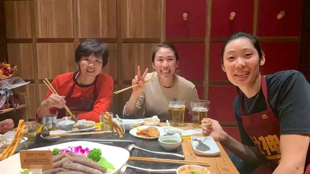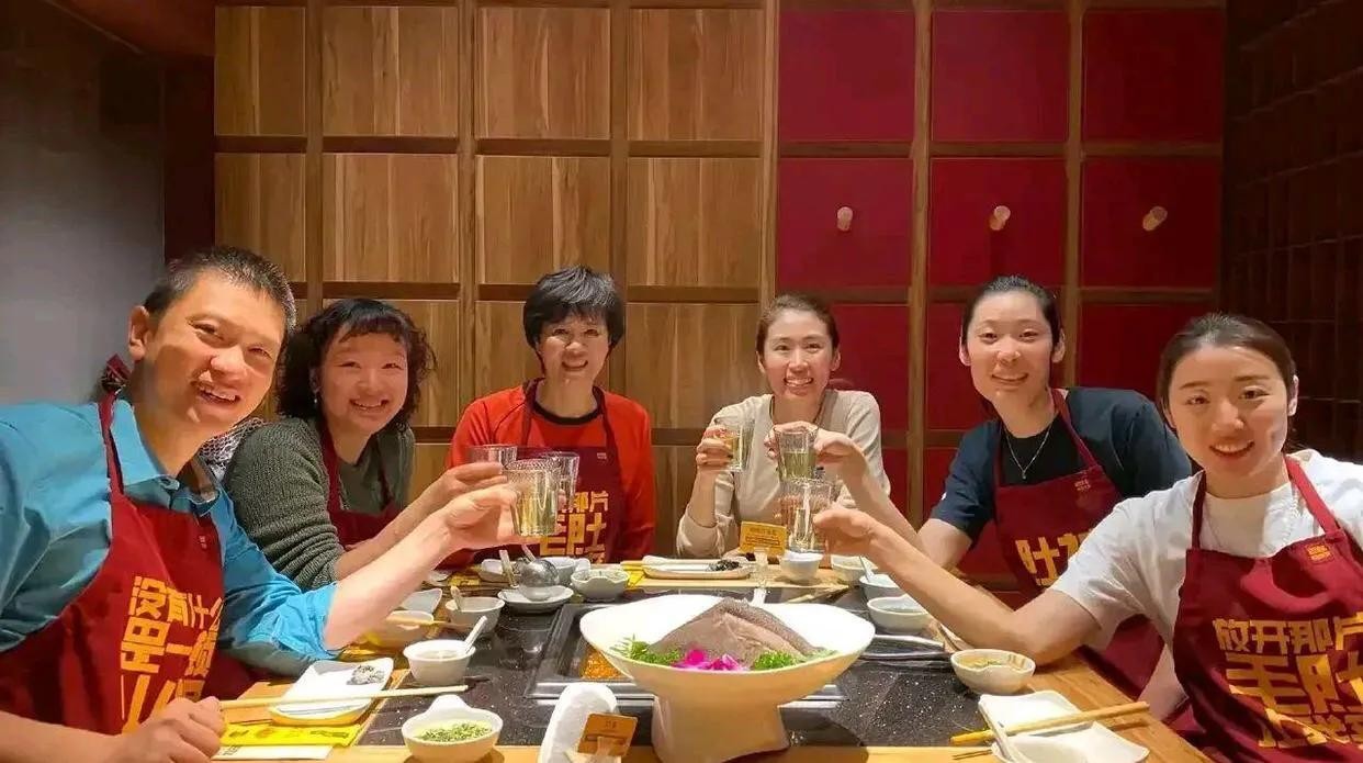 郎平携女儿白浪以及两大爱徒朱婷和姚迪吃火锅,这样的场景真是太温暖了。