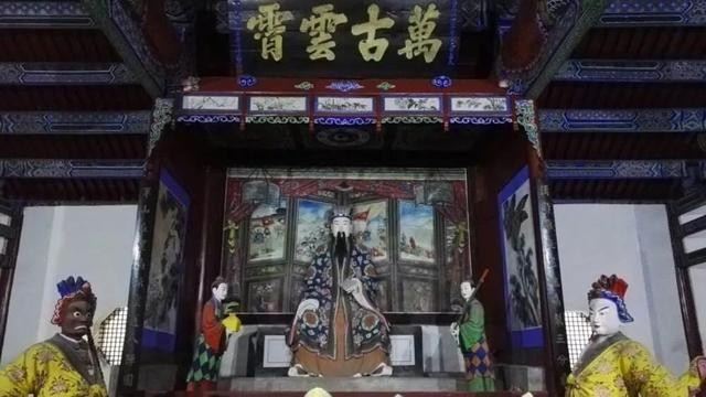 往里走,是一个圆形的戏楼,据说每年清明节都会有各地的戏班在这里唱戏。戏楼上有一块清同治年间的牌匾,上书"永依终古"。