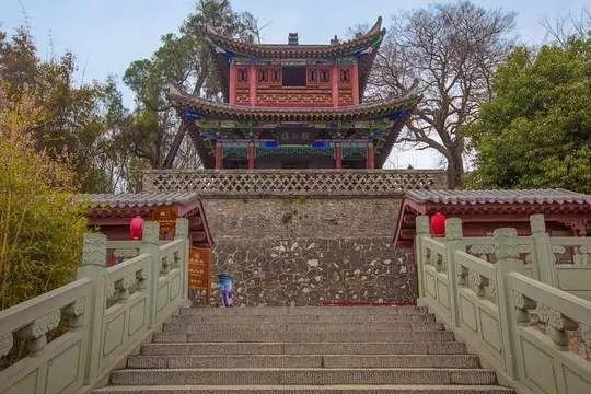 武侯祠与武侯墓隔汉江遥遥相峙,建于景耀六年春,是全国唯一由皇帝下诏修建的诸葛亮祠庙,比成都武侯祠早约五十年,因而有"天下第一武侯祠"之称。
