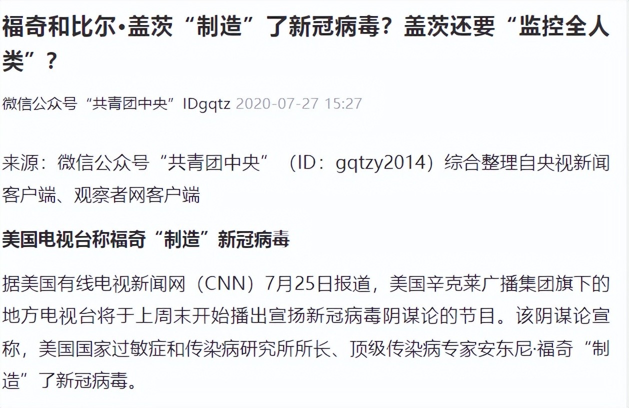 【3】《福奇和比尔·盖茨“制造”了新冠病毒?盖茨还要“监控全人类”?》中国青年网