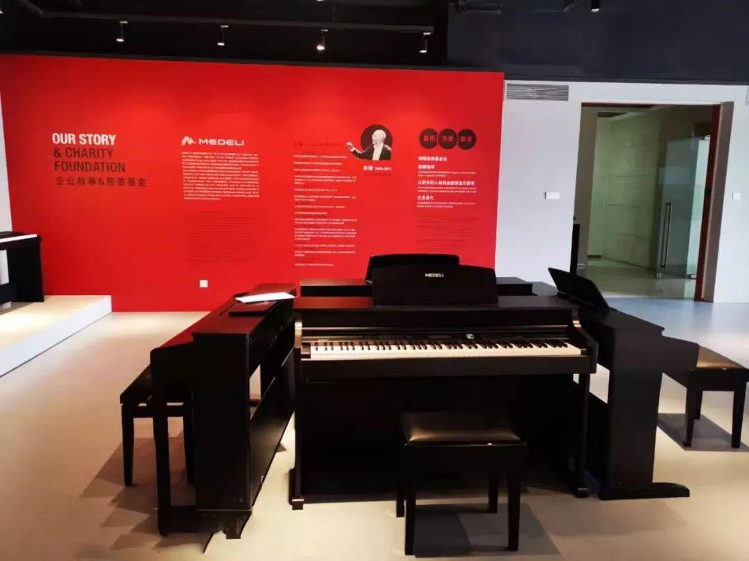 通过MEDELI美得理负责人的介绍,在展厅的墙上记录着MEDELI数十年来的发展史:第一枚自主研发的音源芯片、产品等各大项目研发历程,以及公司的企业文化、企业故事、慈善基金等等,见证MEDELI美得理从成立伊始成为世界乐器33强企业一路成长的风雨兼程。