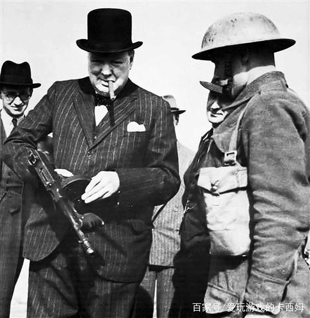 丘吉尔手持汤姆森射击