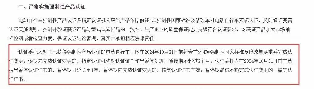 想让你的电动车继续跑?那就得赶紧完成认证了!新规说,到2024年10月31日,所有电动自行车都得完成认证变更。要不及时,认证证书就要被暂停3个月;再拖,证书就直接没了。那时候,你的小车就成了“黑车”了!
