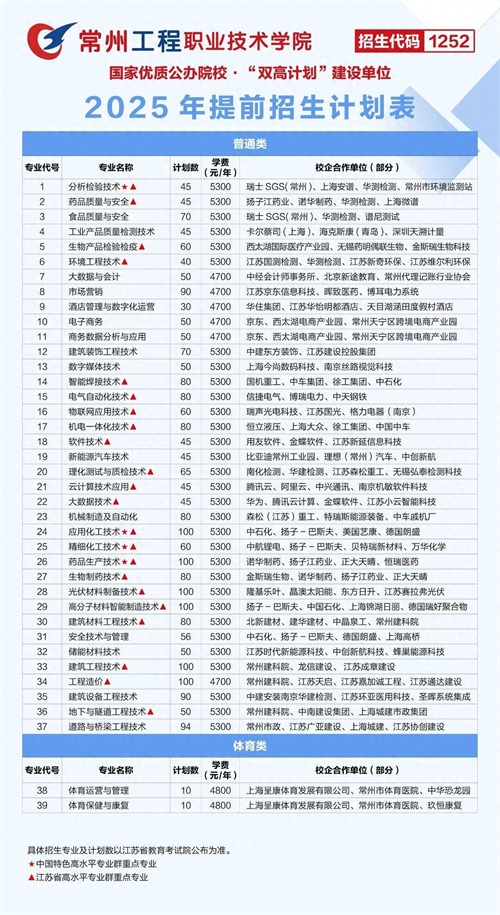 江苏好高职·招生政策|常州工程职业技术学院:招生计划2500名,39个专业,国家双高专业群领衔