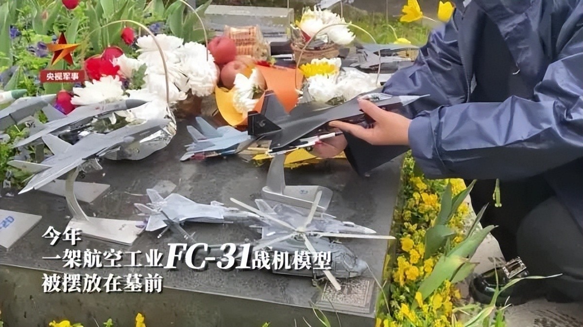 歼-15、歼-20、直-20、山东舰……墓前放满的战机和航母模型,诉说着我国海空力量的逐渐壮大。